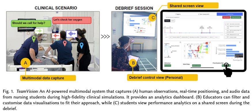 - Echeverria, V., Zhao, L., Alfredo, R., Milesi, M. E., Jin, Y., Abel, S., Fan, J. X., Yan, L., Dix, S., Wotherspoon, R., Li, X., Jaggard, H. A., Osborne, A., Buckingham Shum, S., Gasevic, D. and Martinez-Maldonado, R. (2025), TeamVision: An AI-powered Learning Analytics System for Supporting Reflection in Team-based Healthcare Simulation. In Proceedings of the 2025 CHI Conference on Human Factors in Computing Systems. Association for Computing Machinery. https://doi.org/10.1145/3706598.3713395